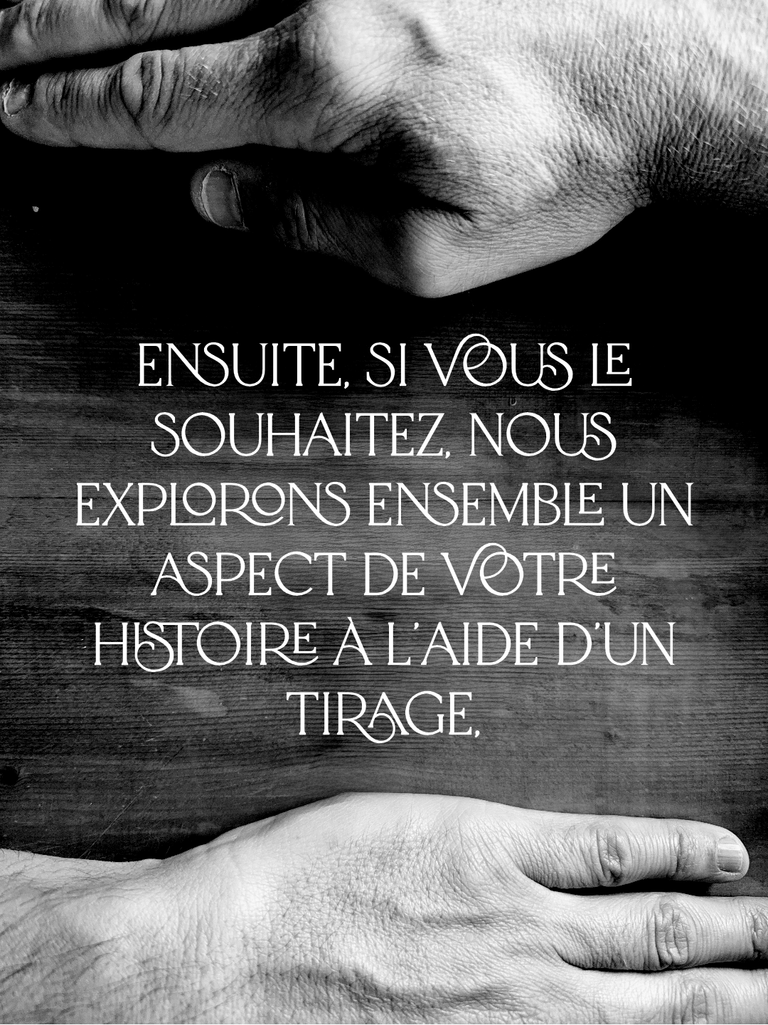 - Nous explorons ensemble un aspect de votre histoire à l’aide d’un tirage de tarot